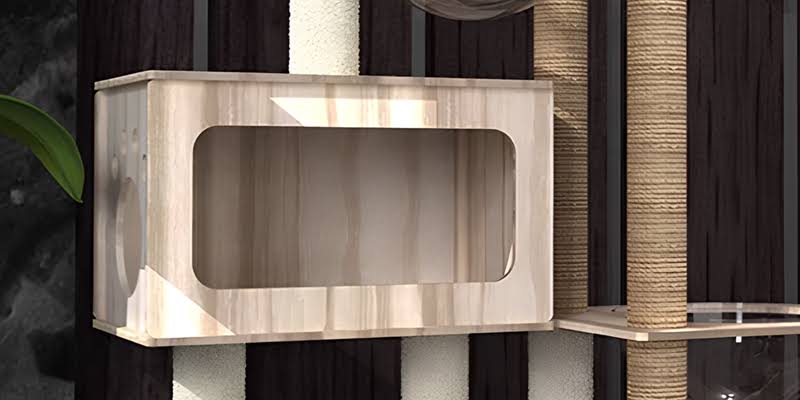 This is a six-story cat climbing frame with two transparent capsules and a cat house, creating a safe space for cats to meet the daily needs of multi-cat families. The thoughtful ladder design allows cats to experience the fun of climbing.