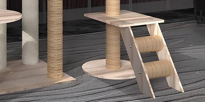 The whole is made of wooden boards, and the columns are wrapped with strong sisal rope for more durability.
